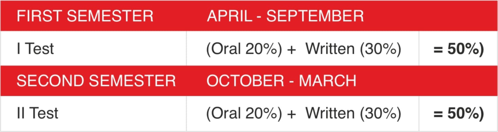 The session comprises of two semesters with assessments in each followed by allotment of corresponding grades.